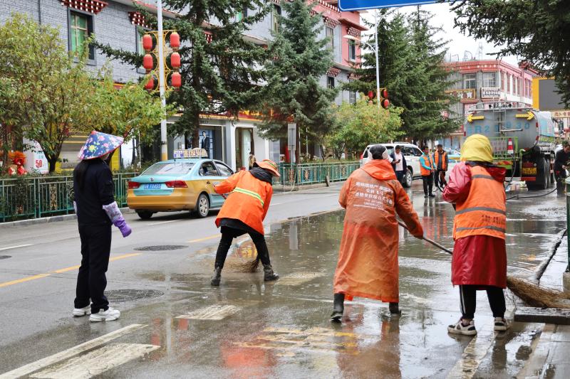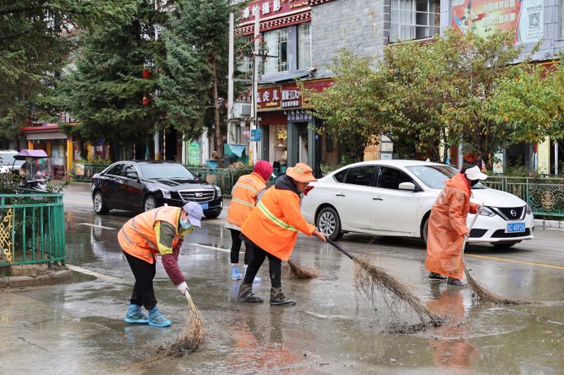 城区干净容貌为尽快恢复,任公司当即组织环卫工人30名喷鼻格里拉市和祥环保科技无限责,辆、扫地车4辆抽调高压水车2,路清淤工做积极开展道,树枝、纯物等进行清理清运同时对下水道水口周边的。时的持续功课颠末近五小,路通顺零洁成功恢复道。