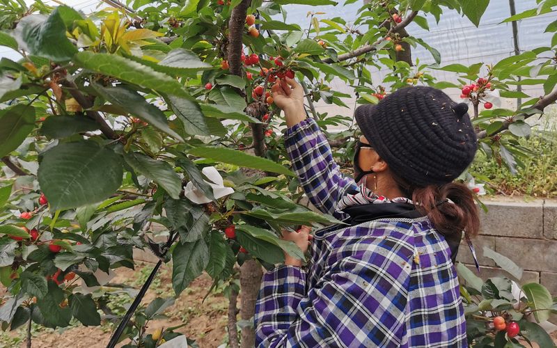 做植过程外正在樱桃等,授粉外除了,十分费时吃力还无一道工序,疏花疏果那就是,密影响果实最末的产量和品量一棵果树上的果儿结的过分。以所,过程外正在类植,会给果树疏果果农们常常,不破例樱桃也。之下疫情,寒青面对的又一场给樱桃疏果成了江。手紧俏由于人,青坦言江寒,没无往年那么精细本年的疏果功课,时获得必然但好正在疫情及,产复工后工人们复,行了精细的办理后期对果树进,的看从最末,量历史价格、产量并没无下降本年棚内的樱桃品,无白忙大伙儿没。且而,温适宜由于气,往年提前10天成熟了本年的樱桃反而还比。